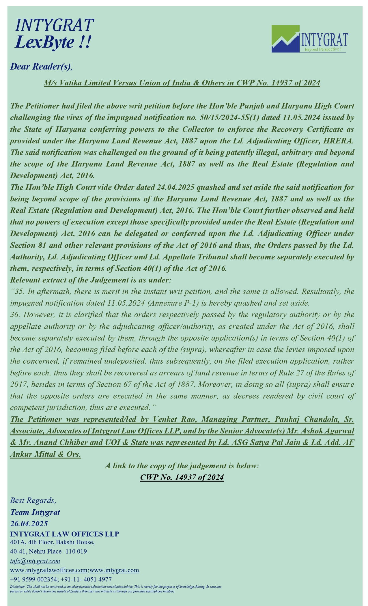 We are delighted to share that #Venket Rao founder #Intygrat, moderated a plenary session on “Real Estate Regulatory Watch-Updates and Way Forward” at the NAREDCO 16th National Convention in New Delhi on 2nd & 3rd February 2024.